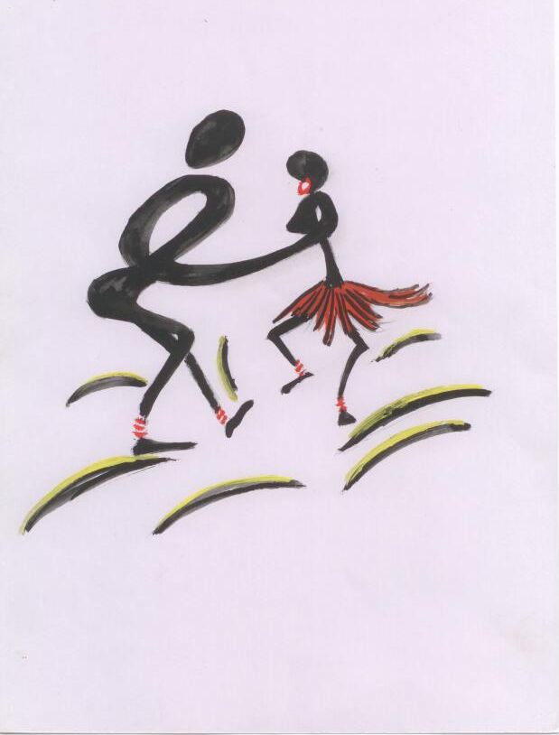 Abstract drawing of a man and woman dancing.